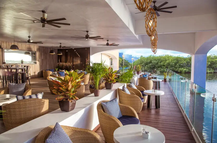 Im Herzen des Resorts, mit Blick auf den Pool und die Lagune, serviert La