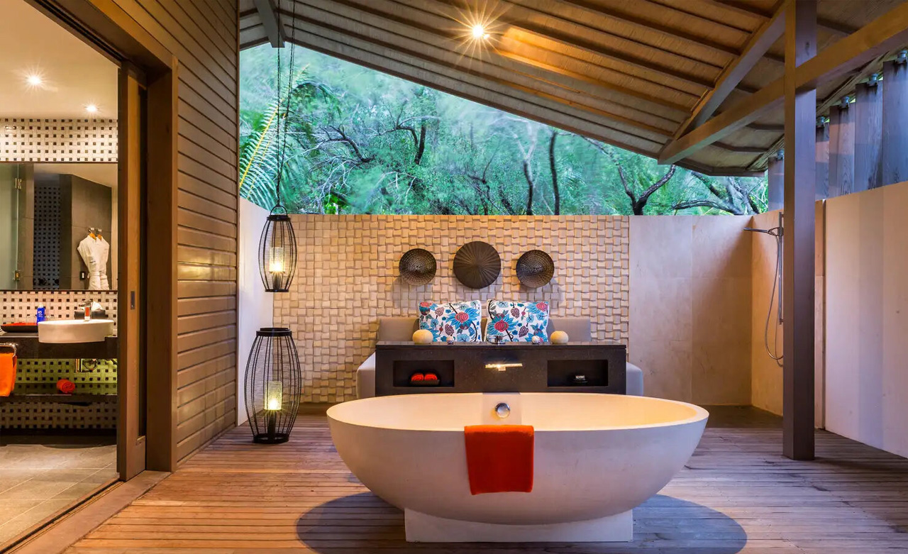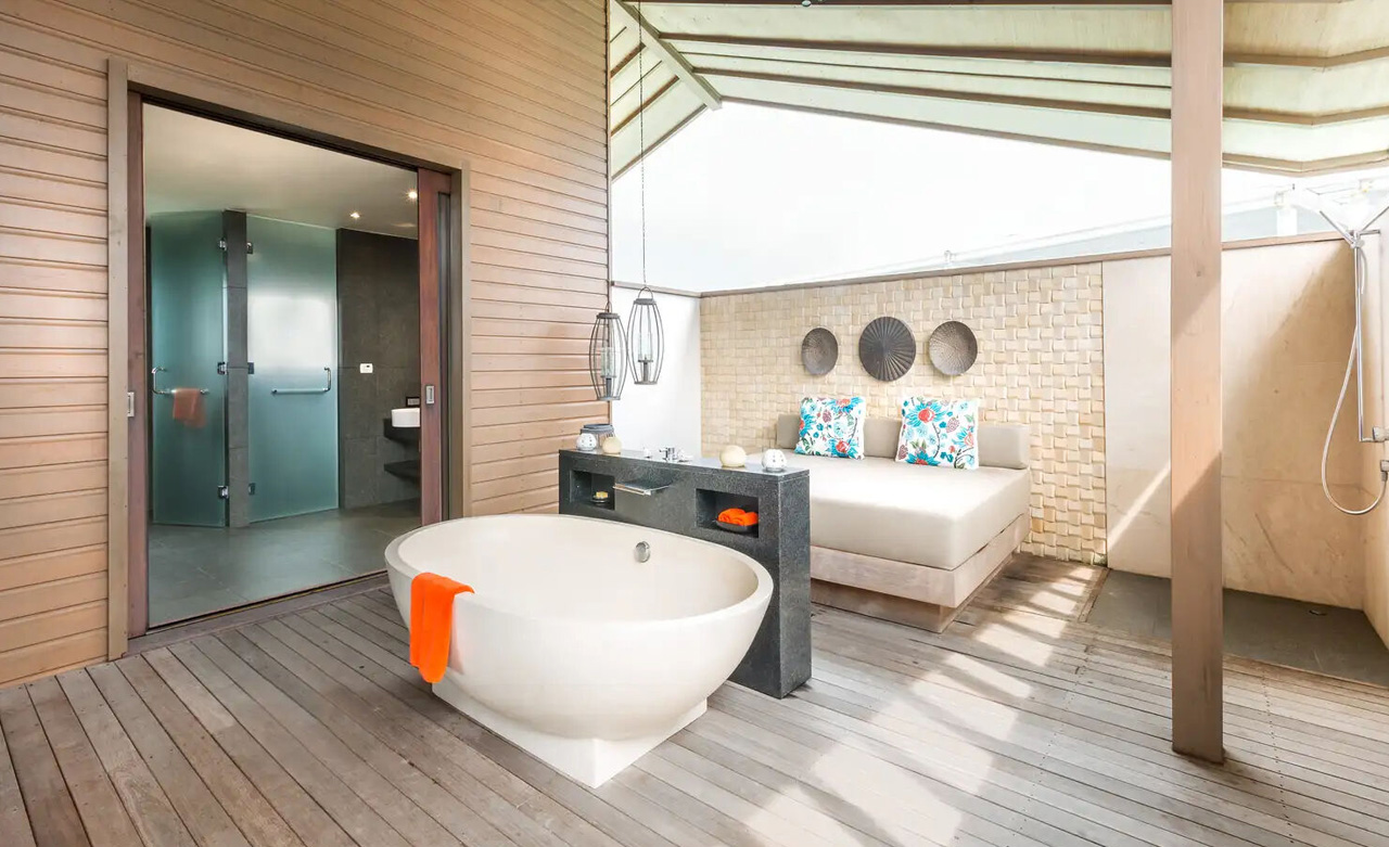 Romantiker mit einer Vorliebe für Sonnenuntergänge fühlen sich in dieser Strandvilla zu Hause: Vom Pool auf der Teakholz-Terrasse über das Badezimmer im Freien bis hin zum Al Fresco-Tagesbett. Hier erwartet Sie Luxus pur.