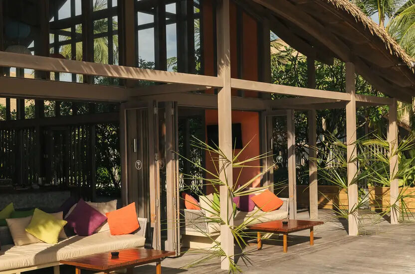 Von dieser Bar am Rande der Lagune, nahe des Restaurants Kandu, haben Sie einen großartigen Blick Über die türkisblauen Gewässer der Lagune. Genießen Sie im Schatten der Kokosnuss-Palmen Ihren Drink, während Sie Barfuß im Sand sitzen.