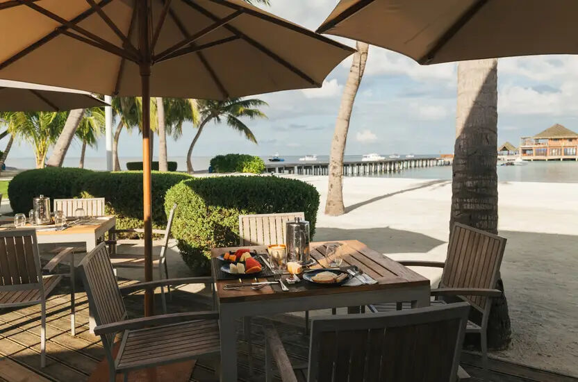 Dieses Spezialitätenrestaurant liegt idyllisch im Schatten direkt am türkisblauen Wasser der Lagune - ein Erlebnis, das Sie nicht verpassen sollten! Hier werden Frühstück, spätes Mittagessen und Snacks serviert.