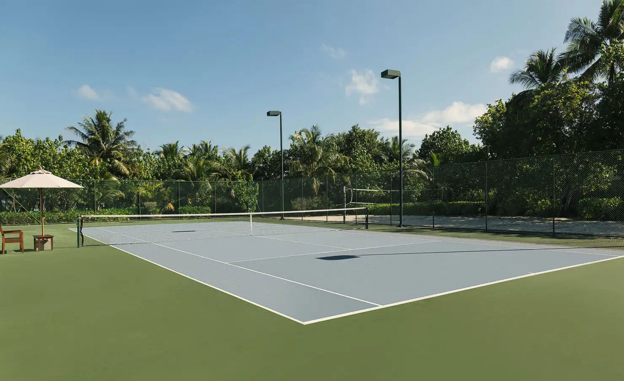 Diese private und unberührte Insel ist perfekt für vertraute Momente. Nehmen Sie sich etwas Zeit, um zu zweit auf dem Tennisplatz des Club-Resorts Spaß zu haben. Da der Platz den ganzen Tag über verfügbar ist, können Sie spontan ans Netz gehen und ein oder zwei Runden spielen. Knüpfen Sie ein paar sportliche Erinnerungen an dieses Inselparadies. Schläger und Bälle stehen zur Verfügung. Behalten Sie den Ball im Auge und lassen Sie sich nicht vom sanften Rauschen des Ozeans ablenken!