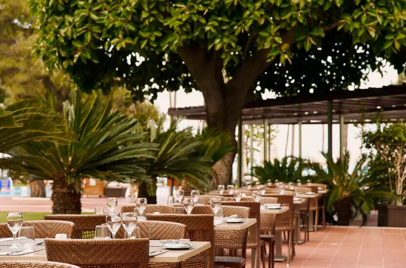 oder auf der Terrasse mit Blick auf das Meer essen.