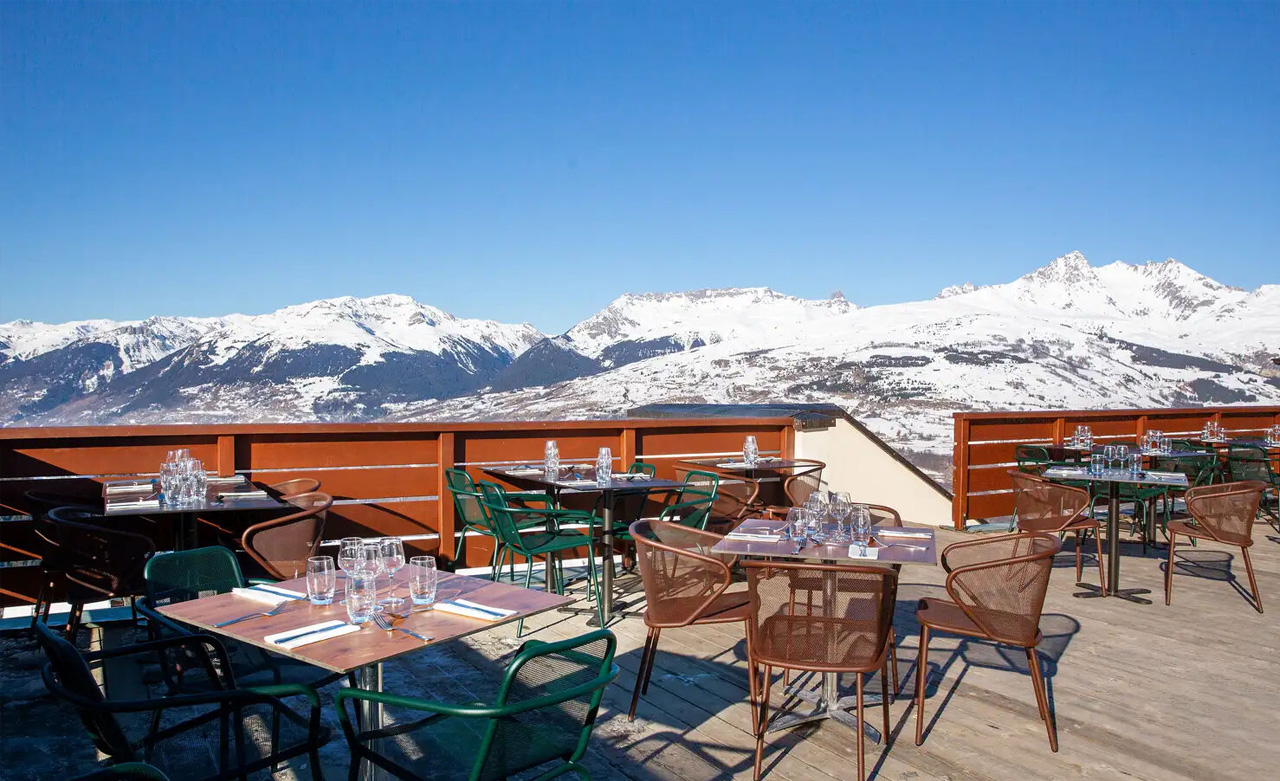 Mit seinem zentralen Kamin, der Holzstruktur, den großen Fenstern und den gemütlichen Sesseln zelebriert das Lokal den typischen Savoyer Bistro-Stil. Hier können Sie die Spezialitäten der Savoie selbst probieren. Traditionelle Gerichte, Platten zum Teilen, lokale Produkte... die Speisen sind köstlich und raffiniert zugleich. Die Weinkarte hebt die regionalen Weine hervor, insbesondere die aus biologischem Anbau. Sie können auch ein schmackhaftes lokales Bier genießen, denn in der Region gibt es zahlreiche handwerkliche Brauer. Von der Terrasse aus können Sie das gesamte Tarentaise-Tal und die Gipfel des Beaufortain-Massivs überblicken. Ein Anblick, an dem man sich nie satt sehen kann.
