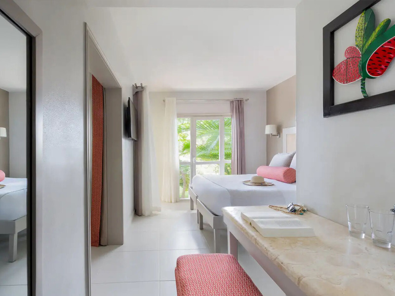 Zentrum des Resorts, Neu: Inspiriert von der reichen und lebendigen Kultur der Dominikanischen Republik bietet dieses Familienzimmer 2 separate Zimmer und einen Balkon mit Blick auf die üppigen tropischen Gärten. Im Herzen des Resorts gelegen, ist das Zimmer nur einen kurzen Spaziergang von allen familienfreundlichen Aktivitäten entfernt und bietet einfachen Zugang zum Strand.