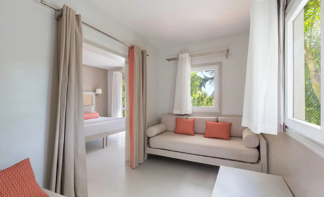 Meerseite: Dieses geräumige Zimmer wurde speziell für Familien entworfen und ist von der dominikanischen Kultur inspiriert. Es besteht aus 2 separaten Zimmern, die jeweils über einen eigenen großen Balkon mit Blick auf das Karibische Meer verfügen. Das Zimmer verfügt über ein separates Schlafzimmer und Bad nur für die Kinder. Das Zimmer liegt in der Nähe des Zentrums des Resorts und ist nur einen kurzen Spaziergang von allen familienfreundlichen Aktivitäten des Resorts und dem Strand entfernt.