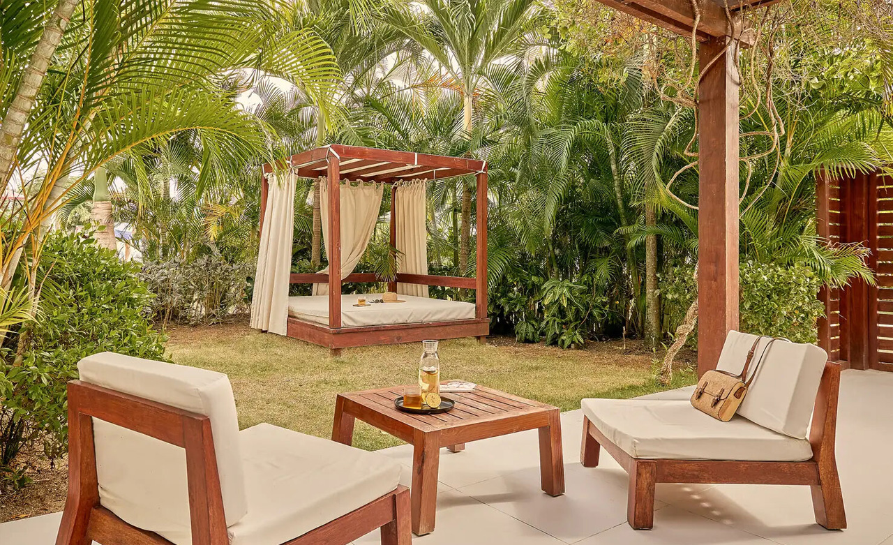 Diese Zimmeraufteilung ist ideal für große Familien und für alle, die Geräumigkeit als Synonym für Komfort betrachten. Die Zimmer befinden sich in kleinen, farbenfrohen Gebäuden inmitten üppiger Natur und verfügen über separate Schlafbereiche für Eltern und Kinder.