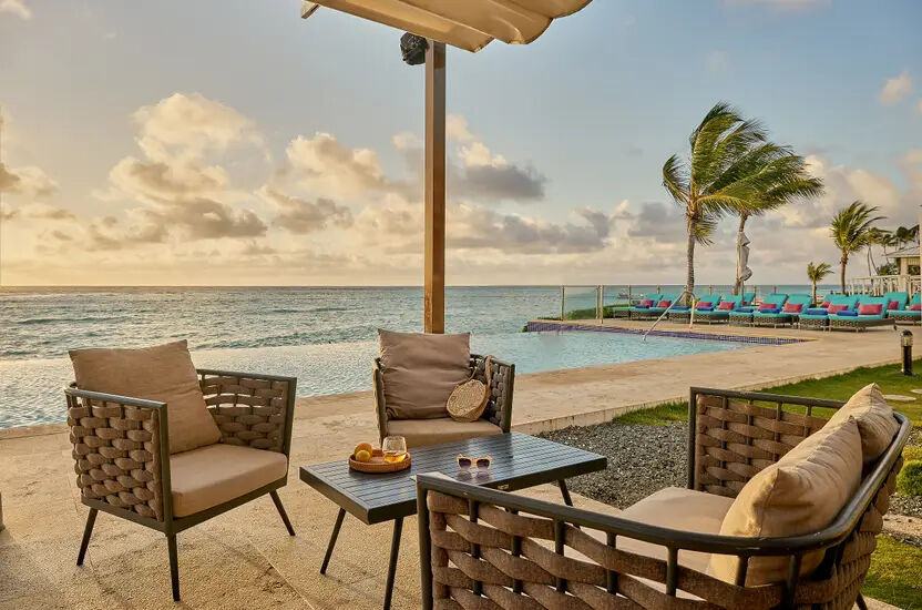 Mit Blick auf den Infinity-Pool bietet dieser intime Ort eine entspannte Eleganz. Reserviert für Gäste der Exclusive Collection Space, genießen Sie einen gehobenen Service mit inspirierten Cocktails, köstlichen Canapés und Champagner zum Sonnenuntergang, alles mit einem atemberaubenden Blick auf das Karibische Meer.
