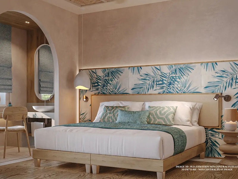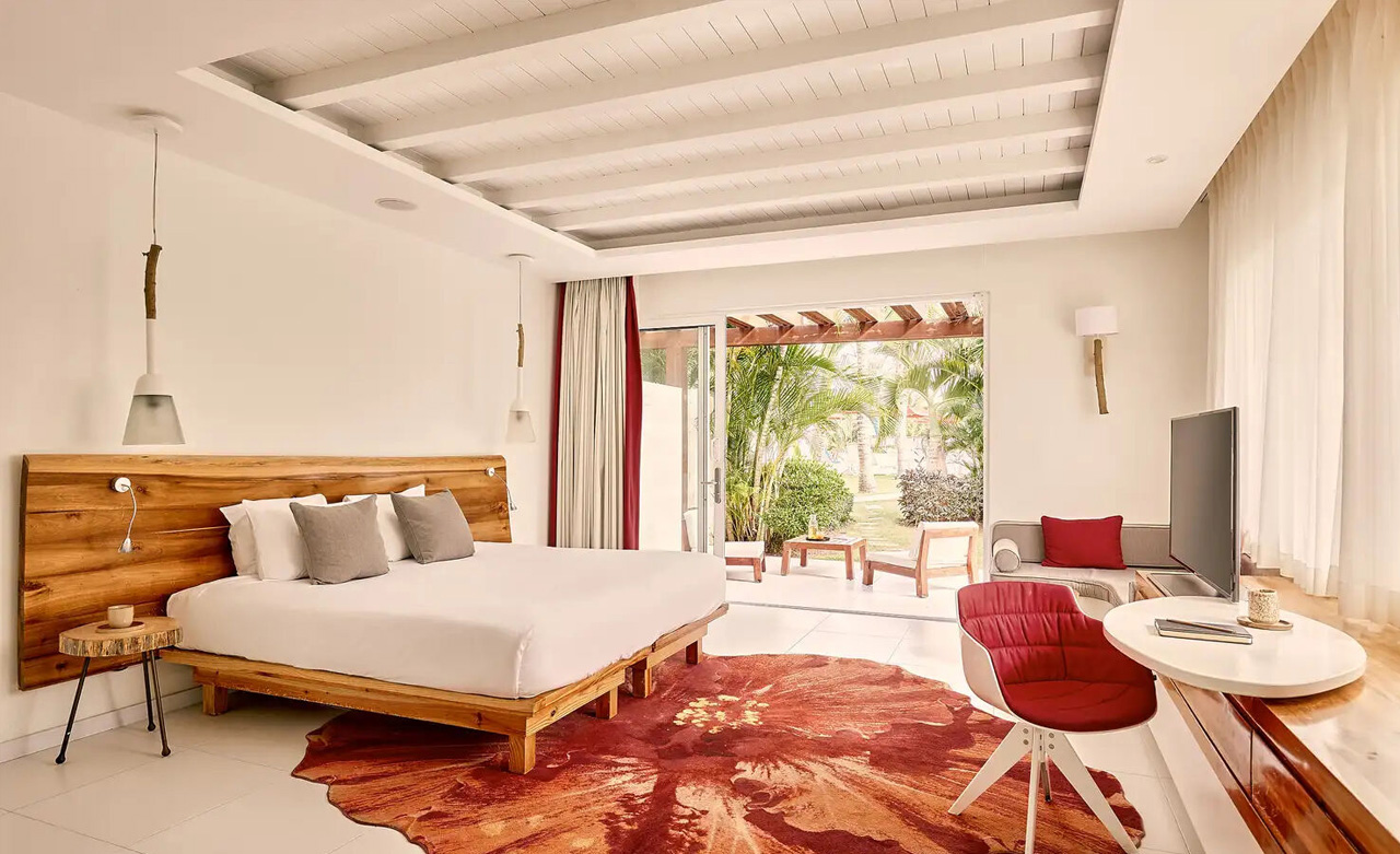 Verweilen Sie in einem friedvollen Rückzugsort, inspiriert von den palmengesäumten Küsten der Dominikanischen Republik. Geräumig und erfrischend präsentiert sich das Zimmer - Deluxe „Costa del Coco“ mit sanften Linien, natürlichen Materialien, pflanzlichen Mustern und beruhigenden Farbtönen. Schlafbereich, eleganter Wohnraum, ein einladender Außenbereich sowie ein Bad mit Spa-Charakter – jeder Bereich lädt zur vollkommenen Entspannung ein.