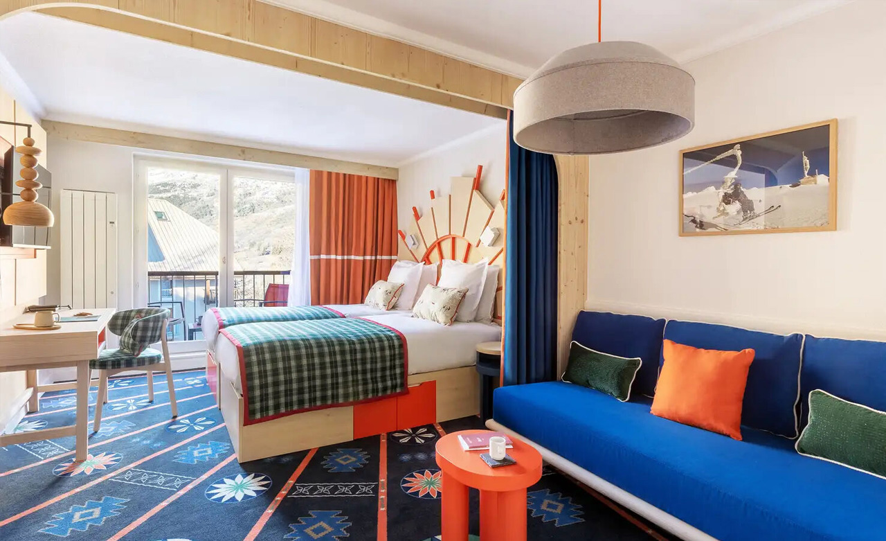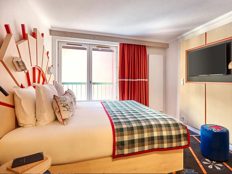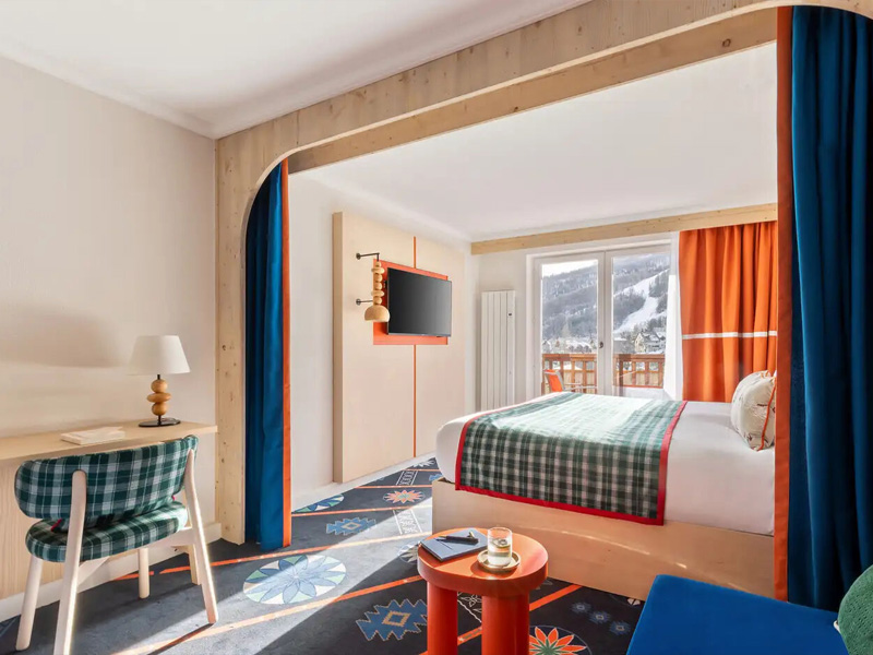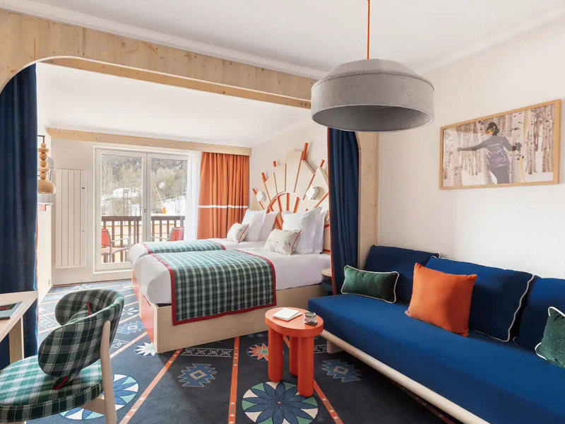 Diese gemütlichen, farbenfrohen Zimmer sind ideal für Familien. Hier kann jeder Gast seinen eigenen Raum mit der allgegenwärtigen Identität der Berge nutzen.