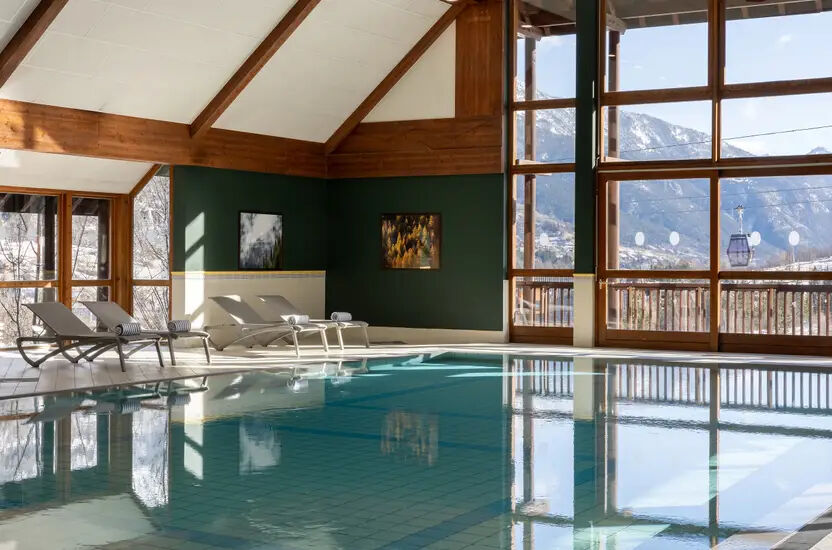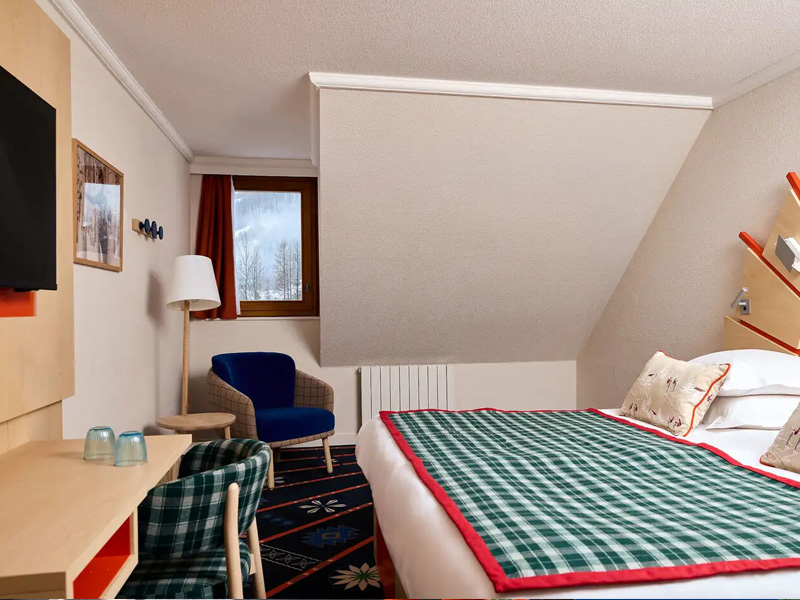 Club-Resort mit 350 Zimmern ausschließlich als Club. Es setzt sich aus zwei fünfgeschossigen Chalets im savoyarder Stil zusammen, wo Holz und Stein sich harmonisch vermischen. Das Nebenchalet liegt neben dem Hauptchalet und ist damit mit einer geschlossenen Passage verbunden.