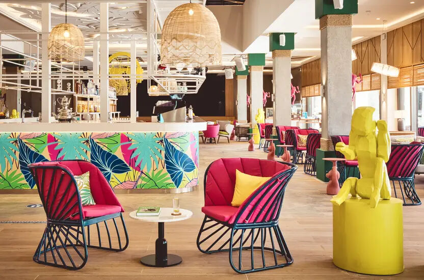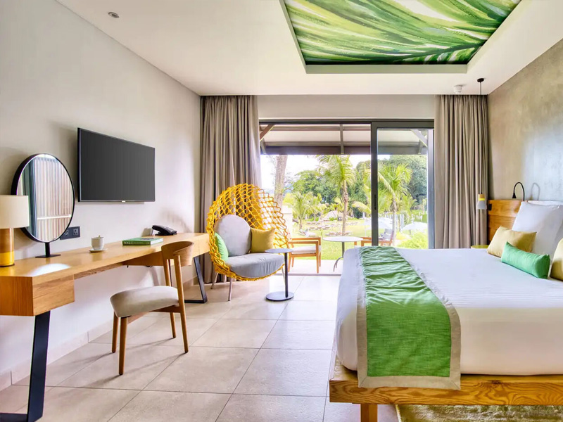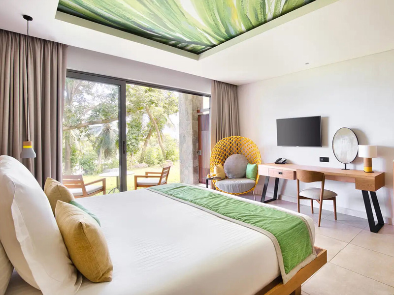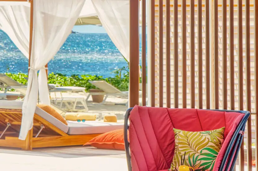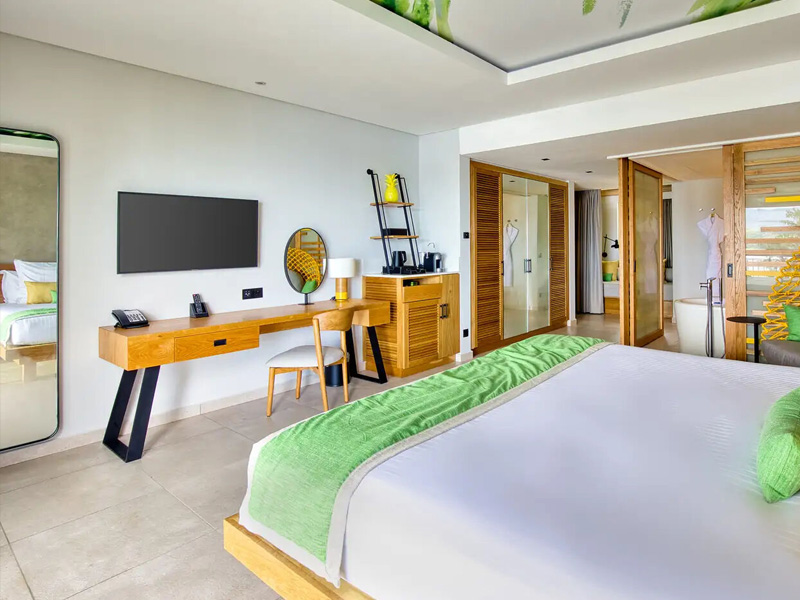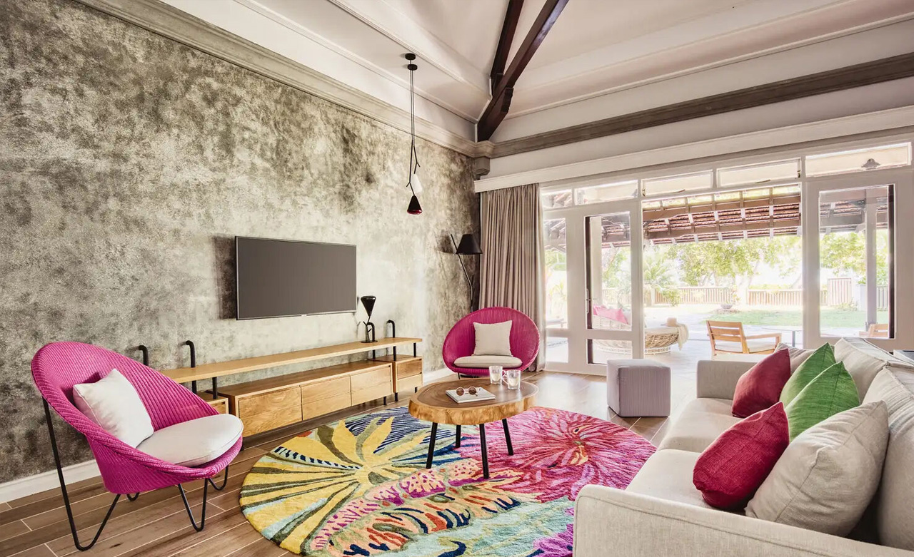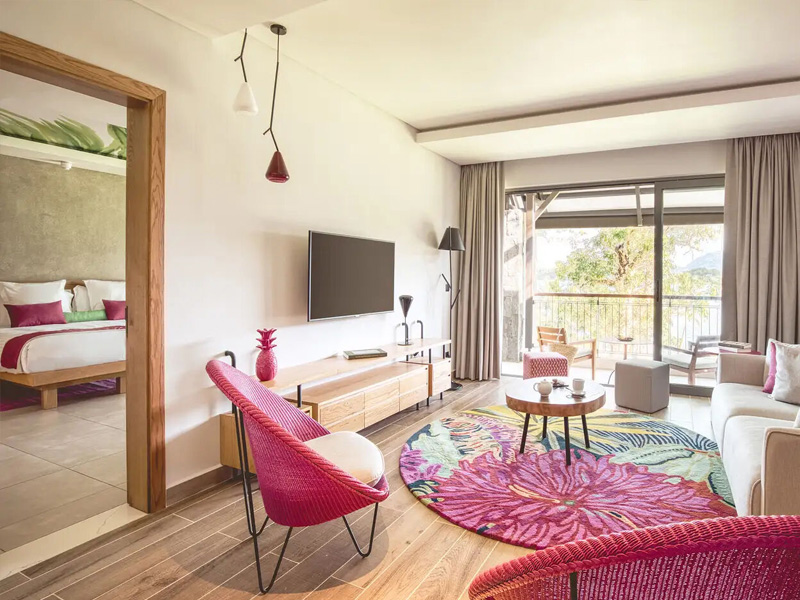 Meerblick: Die starken Farben der Suite werden durch tropische Farbtöne des