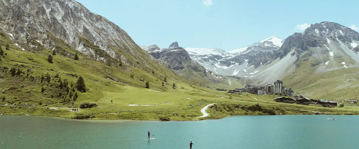 Der nahe gelegene Natursee von Tignes mit seinem glitzernden Wasser bietet die