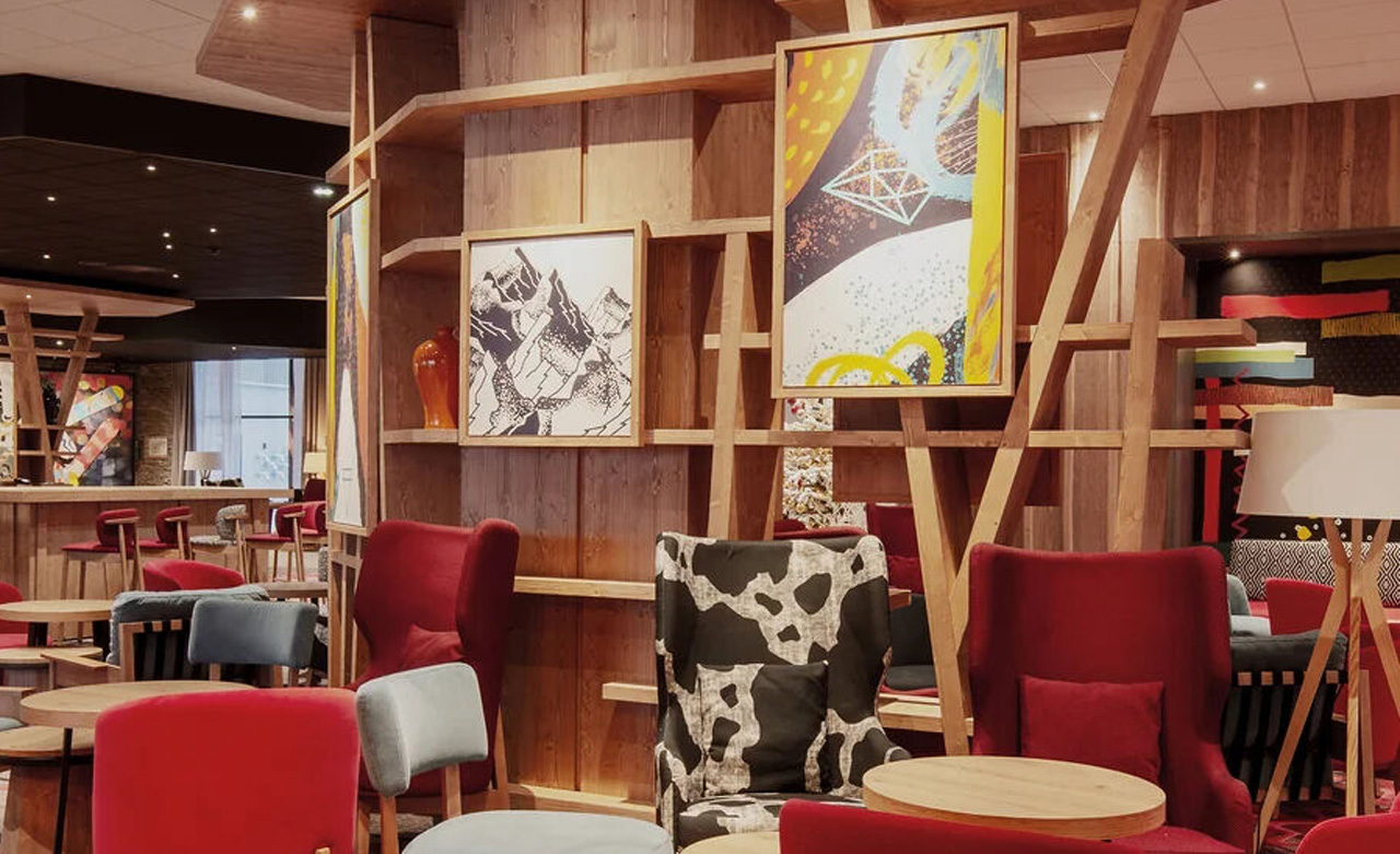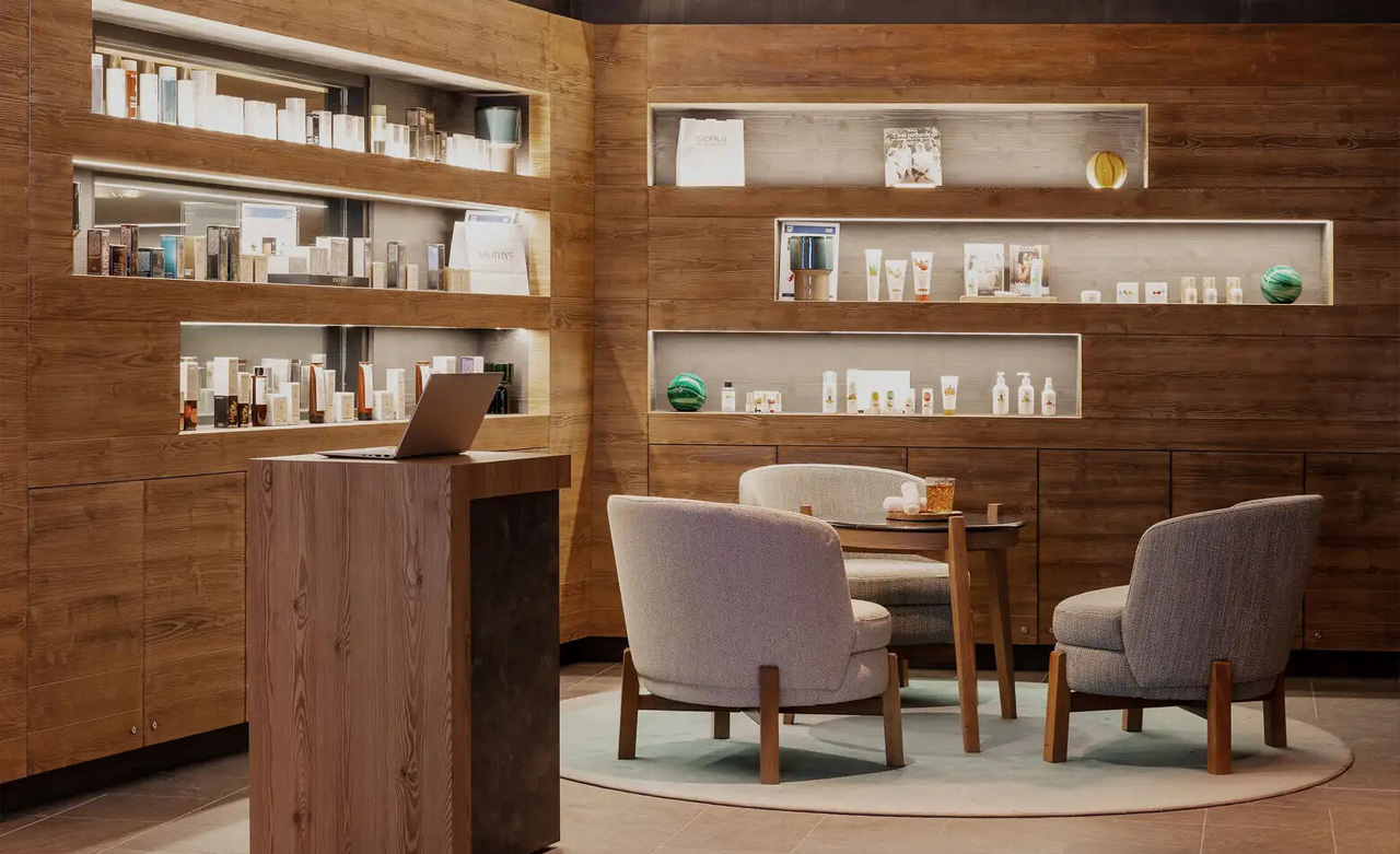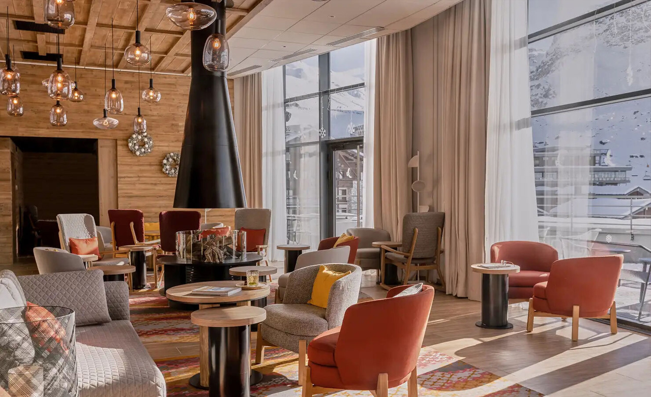 modernes Ambiente, und das Holz ergänzt das Dekor des Resorts, das an die Berge
