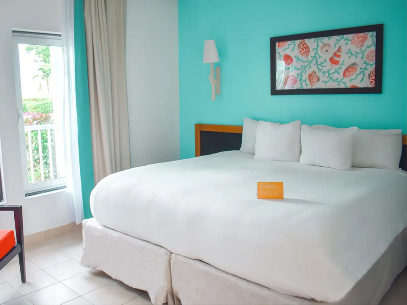 Die vom Ozean inspirierte Farbenpracht des Interieurs verleiht den hellen und frischen Zimmern, die nur wenige Schritte von unberührten weißen Sandstränden entfernt sind, ein typisch karibisches Ambiente.