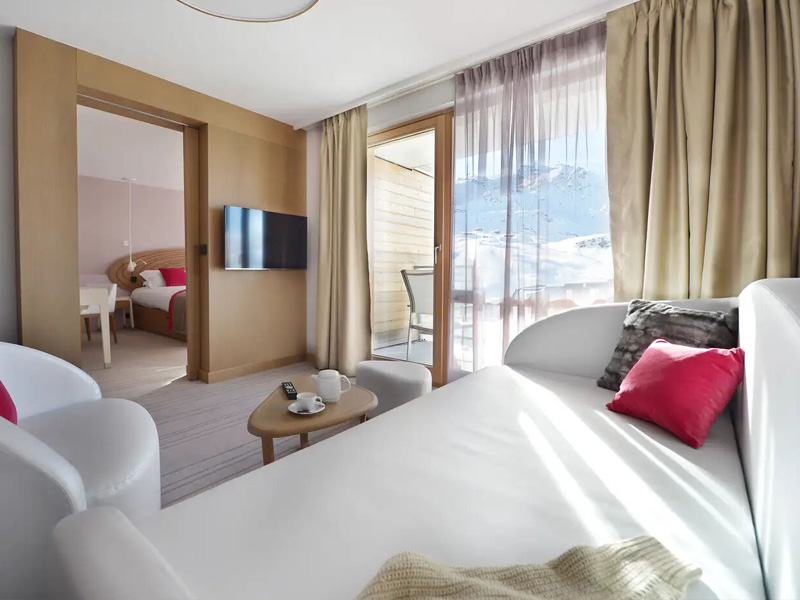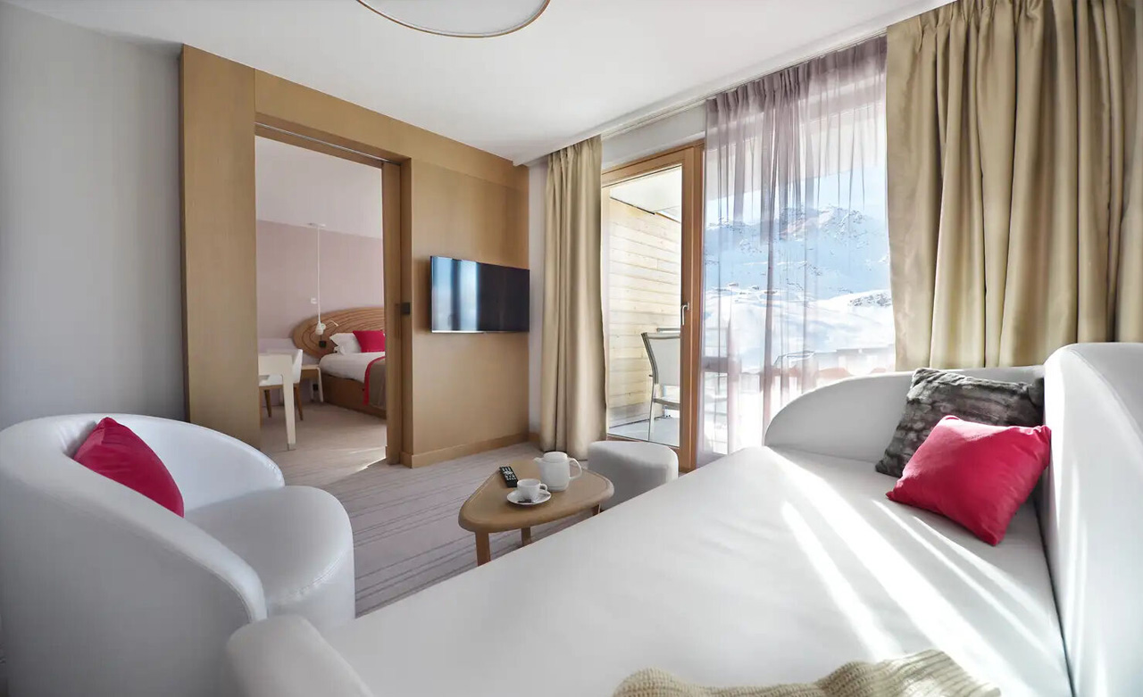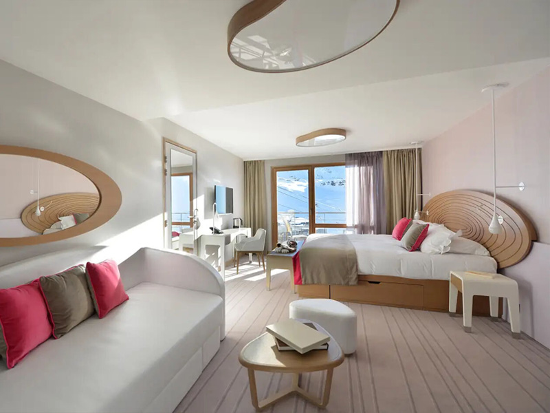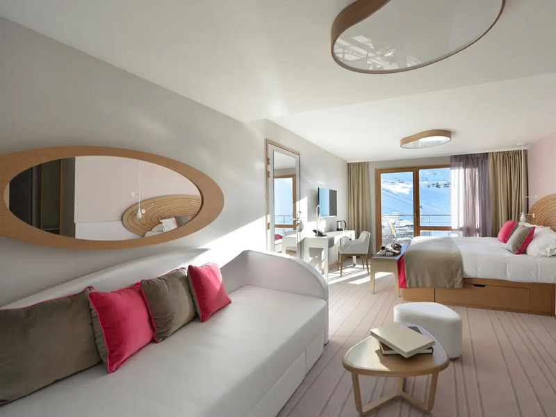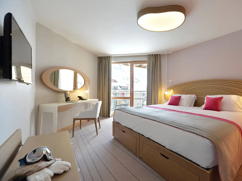Mit Balkon: Während Sie die Skifahrer von Ihrem Balkon aus beobachten, spüren Sie die Atmosphäre des Bergurlaubs. Ihr Zimmer ist geräumig und komfortabel. Sanfte Farben fördern die Entspannung.