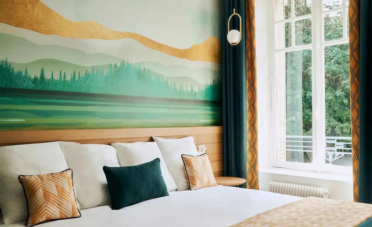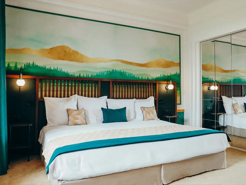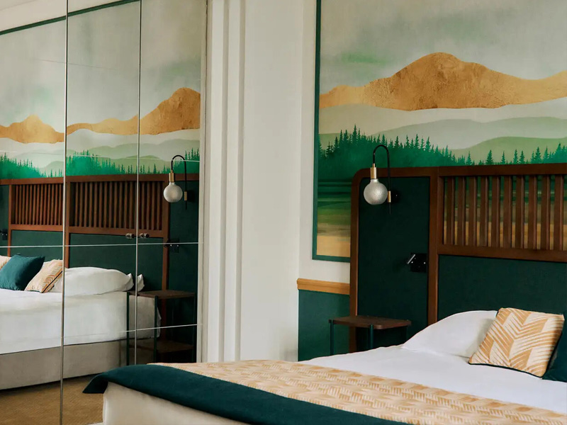 Art-Deco-Stil, der mit seinen Grün- und Goldtönen eine gemütliche Atmosphäre